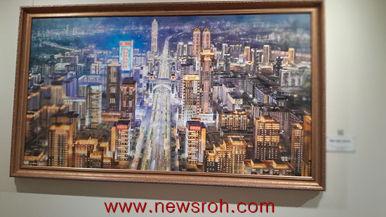 오른편 전시공간엔 북한의 발전상을 그린 그림들이 많았다. 새로운 거리의 새로운 집에 입주하는 모습이 여러 점 눈에 띄었다. 특히 그림속 주인공의 손에 입주러가증을 들고 있는 모습이 인상적이었다.