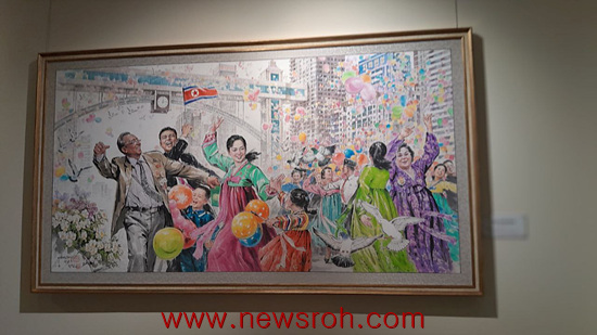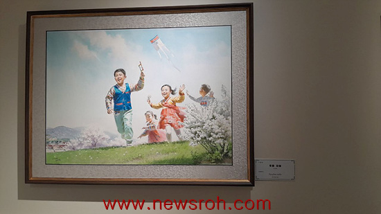 또한 올 6월 완공 개장한 원산갈마지구 해수욕장의 풍경을 그린 작품들이 여러 점 있었고 대동강변 수영장을 묘사한 그림들도 보였다.
