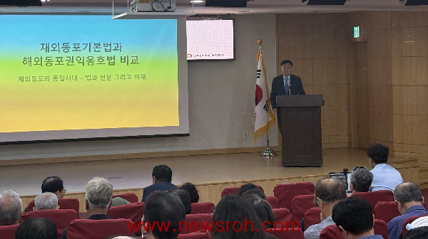 로창현 재외동포신문방송언론인협회 회장이 25일 국회의원회관에서 열린 광복80주년 기념 재외동포 통일정책 세미나에서 발제를 맡아 통일시대를 대비한 핵심 정책과 재외동포의 역할에 대해 격정(激情)의 목소리를 냈다.