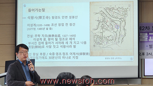이어 김용태 교수가 ‘원산갈마 불교역사문화의 거점’ 발제를 통해 △ 석왕사의 역사와 고승의 계보 소개 △ 왕권과 왕실 불교의 교점, 석왕사를 풀어나갔다. 석왕사는 세종 대(1424년) 선종 18사에 지정되는 등 120명 스님이 거주하는 대규모 사찰이었고 조선 후기에도 왕실사원의 위상을 유지(維持)했다.