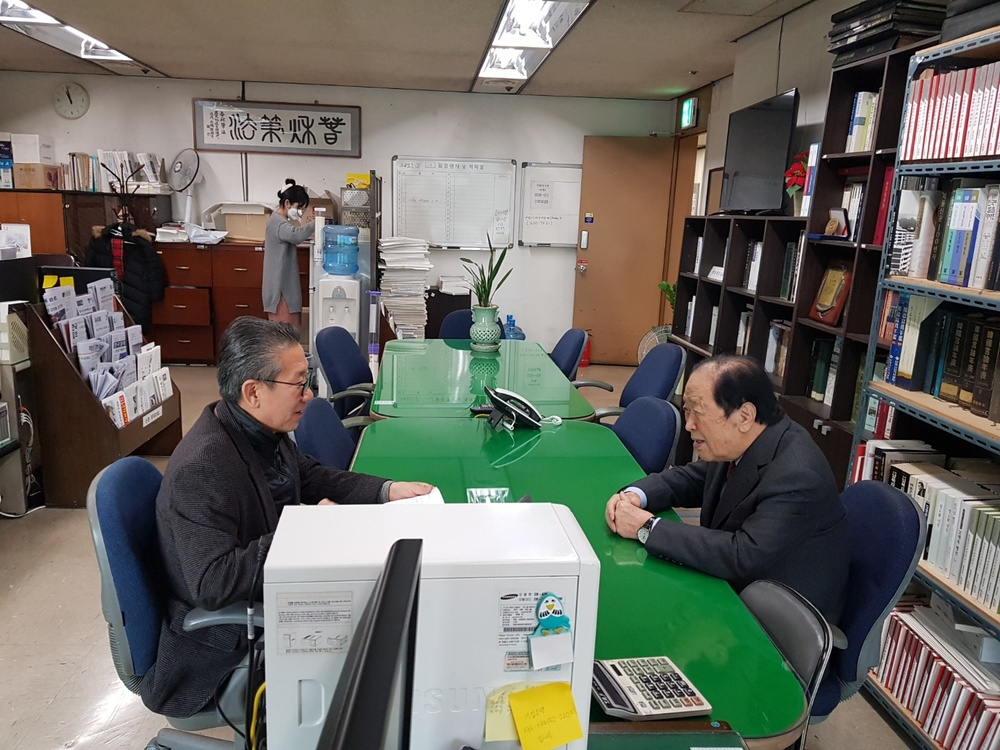 뉴욕일보 최용국 지사장과 면담을 하는 박기병 회장 © 뉴욕일보 |