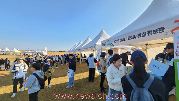 올해로 6회째인 DMZ오픈 평화걷기는 1600여명의 시민들이 평화누리 인근 임진강변 생태탐방로 7.5km 코스에 참여했다. 걷기 행사는 미라클타운에서 그리팅맨, 연천 두루미 테마파크로 이어지는 DMZ 평화의 길 13코스 구간에서 열렸다.