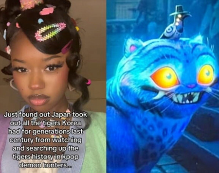최근 한 해외 틱톡커가 "케데헌을 보고 호랑이 역사를 찾다가 지난 세기에 일본이 한국의 모든 호랑이를 멸종시켰다는 사실을 알게 됐다"는 내용의 영상을 공개했다.