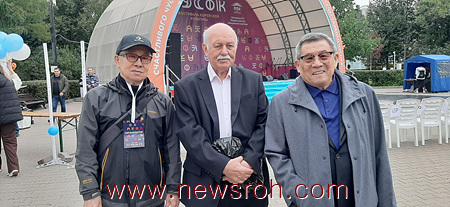 행사 주최자인 고려인연합회 조 바실리 회장, 저명한 고려인전문 러시아한국학자 니콜라이 부가이, 고려인신문 편집장 텐 발렌틴(왼쪽부터).