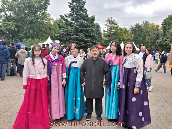 김원일 교수와 한복 차림의 러시아 제자들
