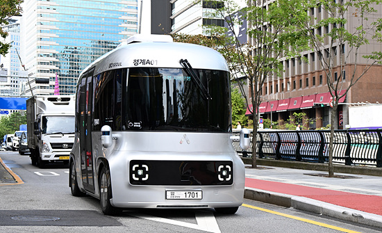 운전석 없는 자율주행셔틀 ‘청계A01’ 노선이 지난 23일부터 청계천을 달리고 있다. ‘청계A01’는 교통카드가 있는 누구나 무료로 탑승할 수 있다.