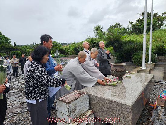 사부대중은 한국인 위령탑 영단에 꽃을 올리고 반야심경을 봉독 한 후 다시는 전쟁으로 인한 희생자가 발생하지 말기를 기원하며 한반도의 평화와 통일을 서원했다.